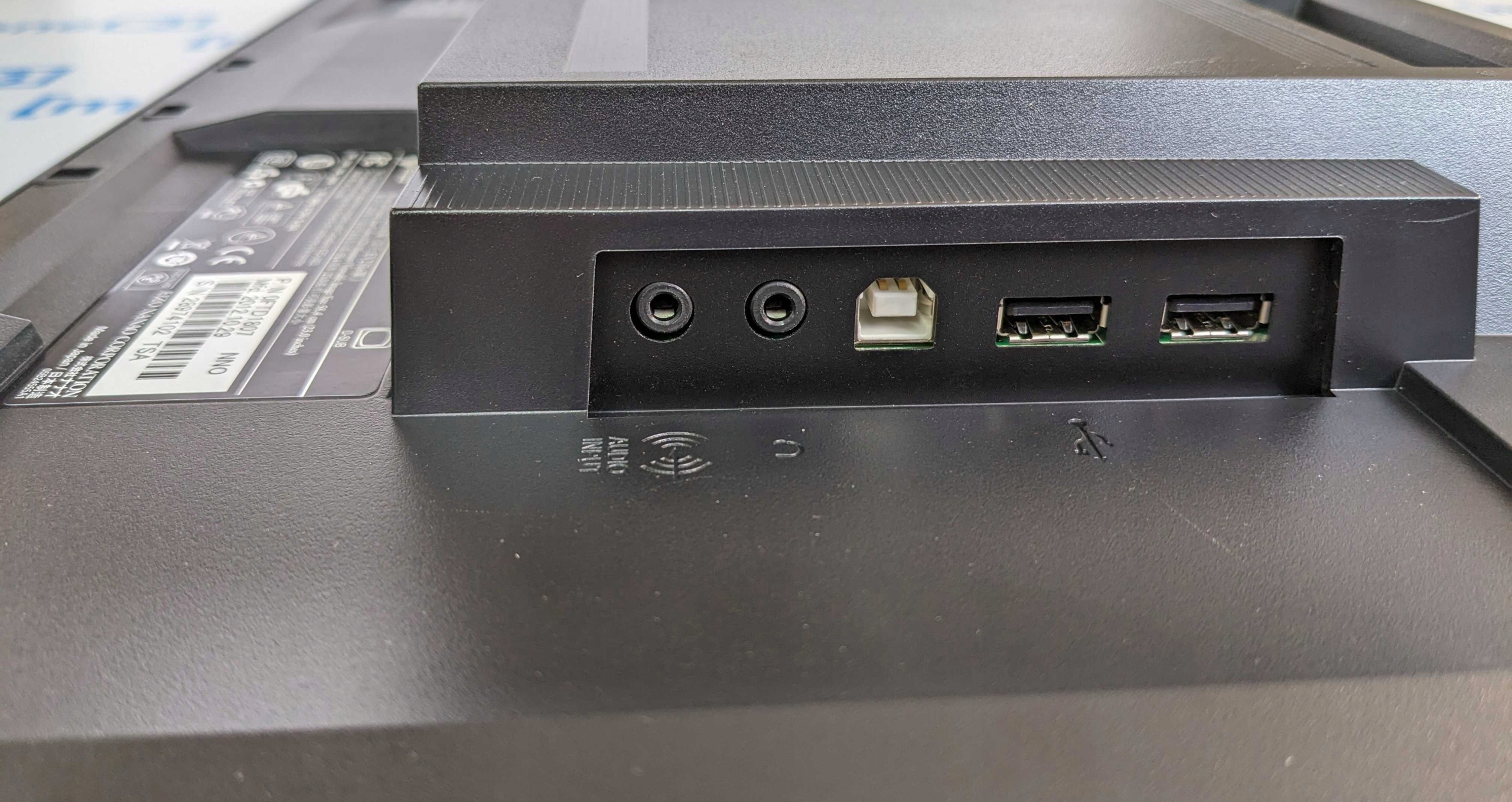 D-Sub (VGA), DisplayPort, DVI, USB 2.0 typ A, USB 2.0 typ B, wejście optyczne audio, wyjście audio (minijack 3,5 mm)