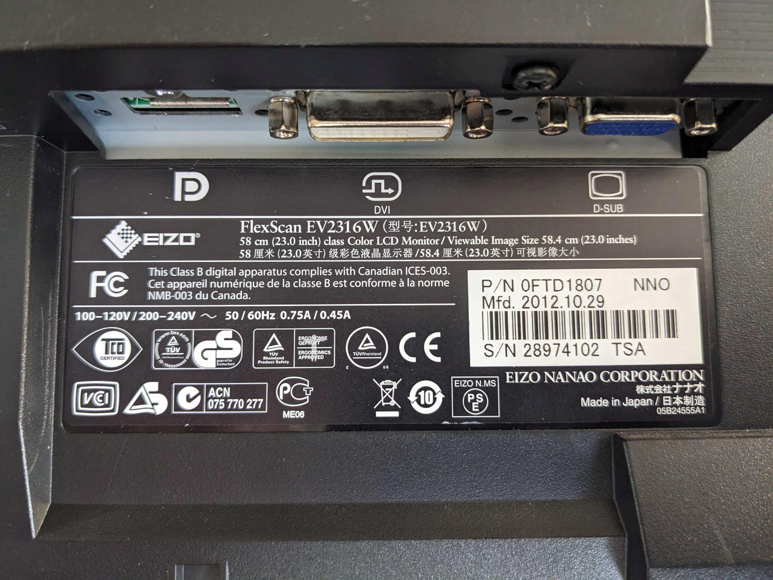 • Producent / model: EIZO FlexScan EV2316W