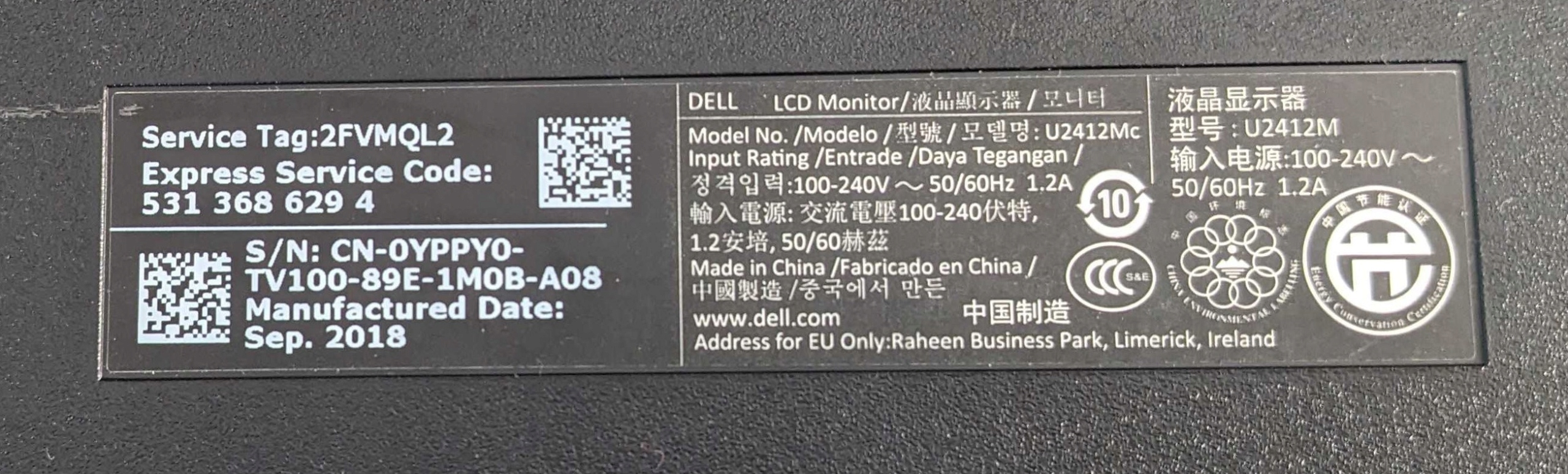 Monitor Dell UltraSharp U2412Mb 1920×1200 LED IPS DisplayPort, DVI, D-Sub (VGA), hub USB, z okablowaniem, bez stopy (vesa 100×100), klasa B (foto)