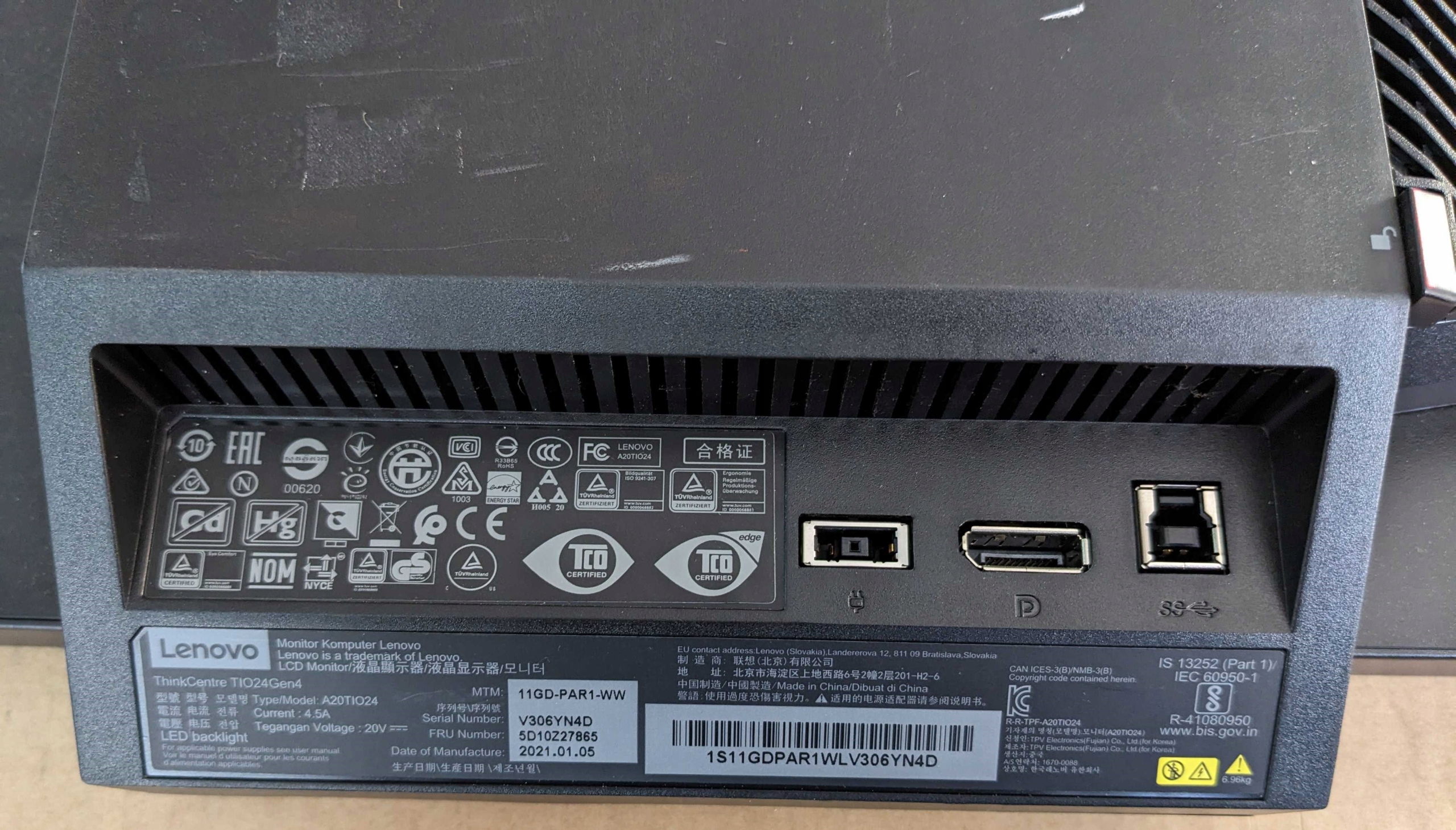 Monitor Lenovo ThinkCentre TIO24 G4, 24” FHD, Cam z okablowaniem, klasa B (foto)
